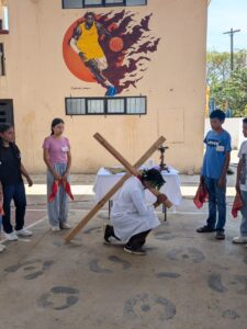 Durante esta Semana Santa organizamos en la Costa Chica de Oaxaca encuentros de Pascua Juvenil. Un tiempo de reflexión sobre la pasión, muert y resurrección de Jesús. Los jóvenes presentaron y reflexionaron sobre un sociodrama sobre los valores basados en la enseñanza de Jesús durante la Última Cena. Presentaron las estaciones del Vía Crucis y al final compartieron la LUZ DE ESPERANZA DE CRISTO RESUCITADO.
